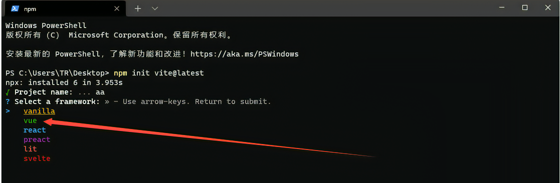 npm init vite@latest